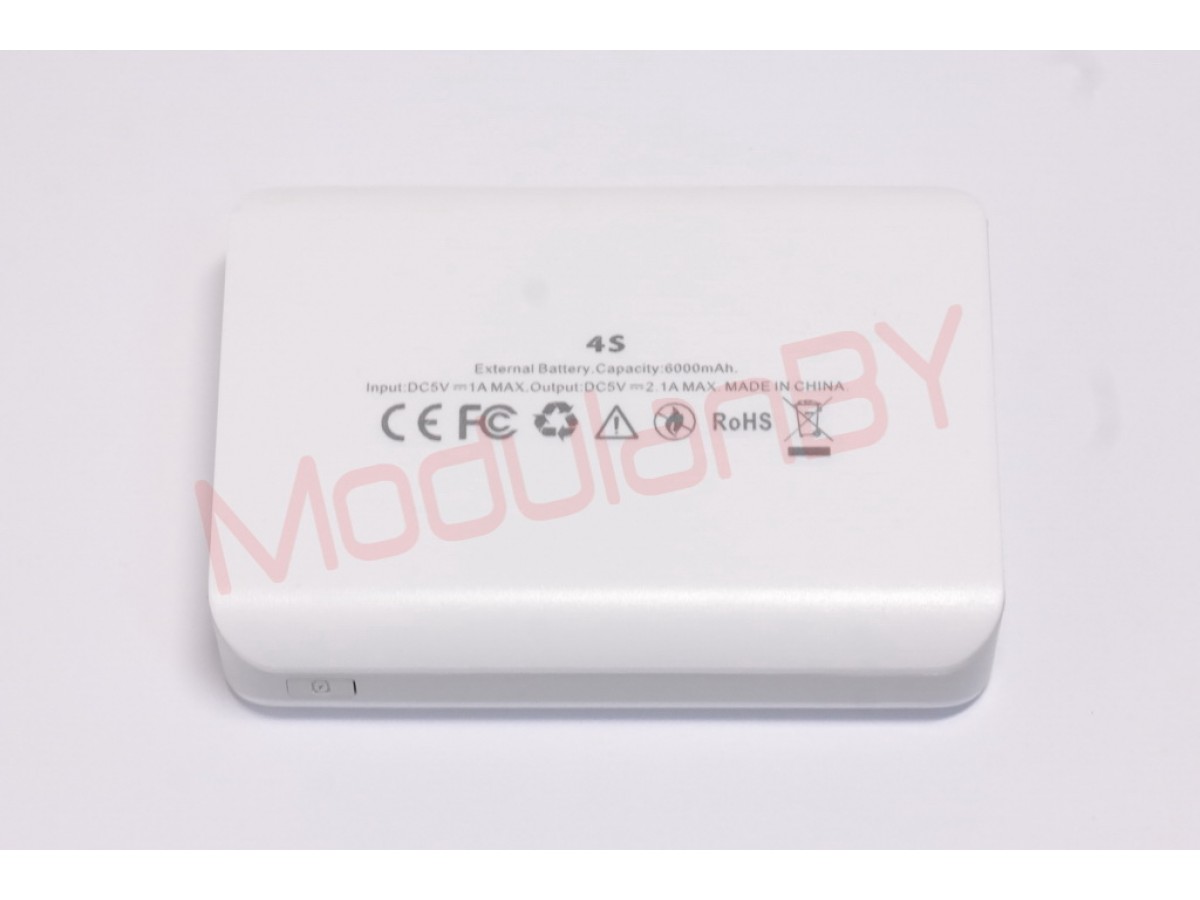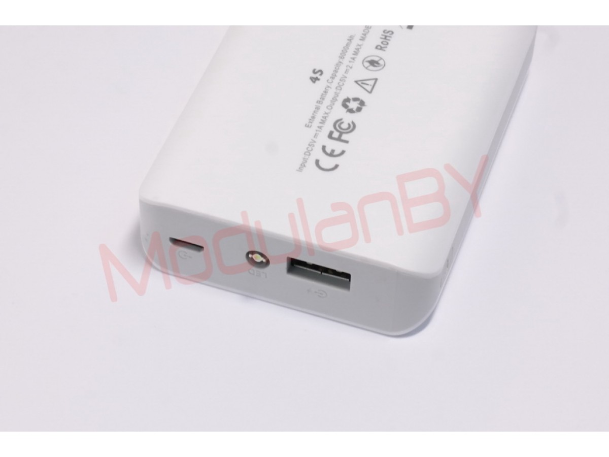 4S-WT (Белая) 5V 6000mAh input 5V 1A max , output 5V 2,1A max , фонарик